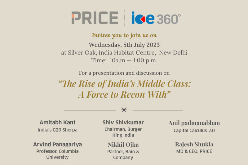 PRICE is organising a panel discussion on “The Rise of India’s Middle Class:  A Force to Reckon With” of imminent discussants from public policy and corporate world. The three key issues that we intend to examine are (1) how the dynamism of the Indian middle class can be harnessed to drive development; (2) to understand India’s aspiring class and its members differ from the many millions of middle-class Indians who have not only emerged from poverty but have also achieved economic security; and (3) examine what the government and the private sector can do to significantly expand the middle class to the millions who aspire to join it.