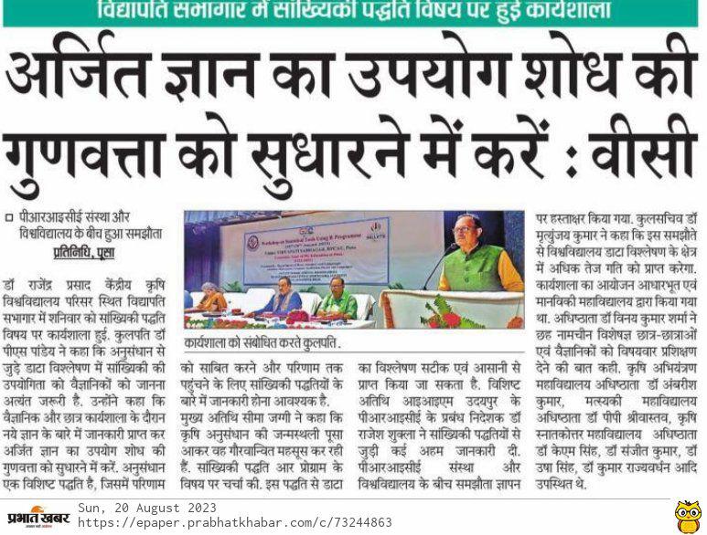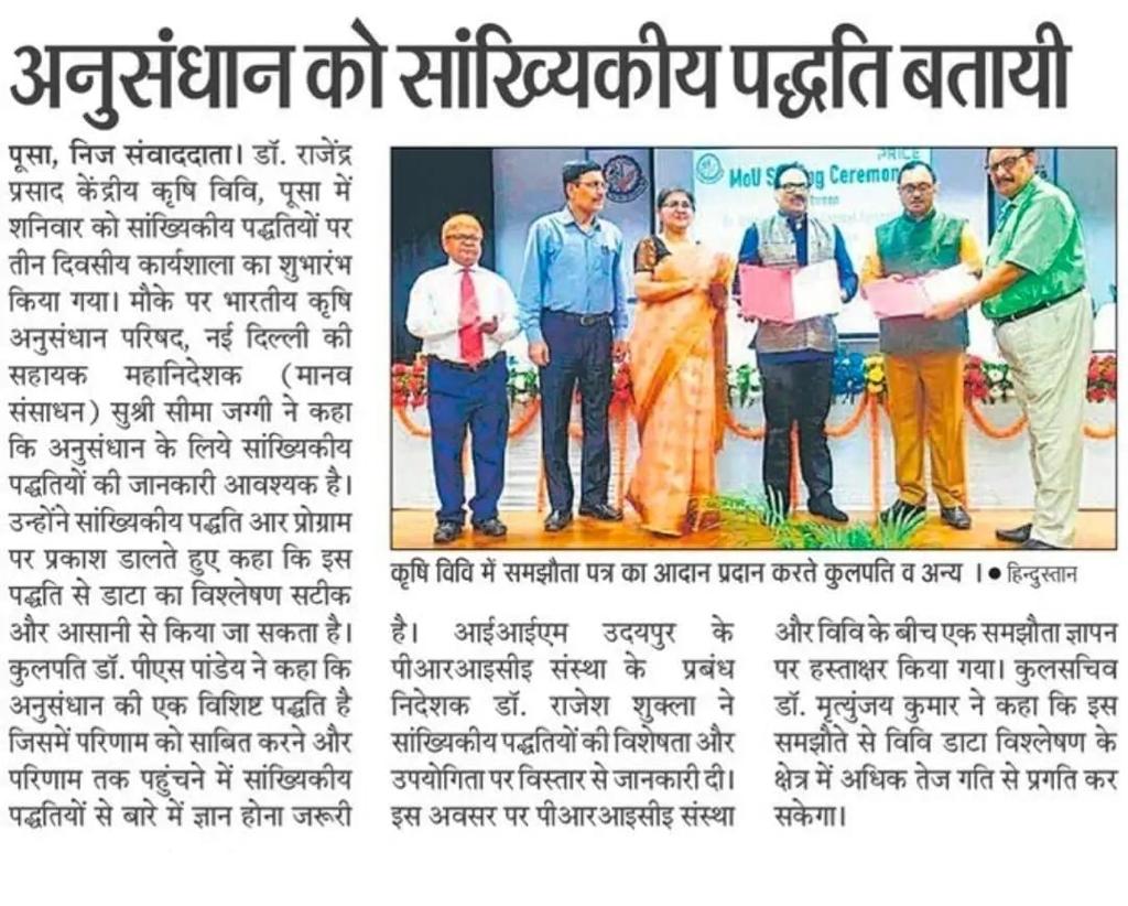 An MoU has been signed to set forth the framework for collaboration between the Dr. Rajendra Prasad Central Agricultural University (RPCAU) and the PRICE to enhance applied research shaping agricultural stakeholders into self-sustaining mode through cutting edge integrated research and outreach to meet the agricultural needs of the country with special reference to Bihar and to act as a link between the university scientists and rural community as well as allied industries.