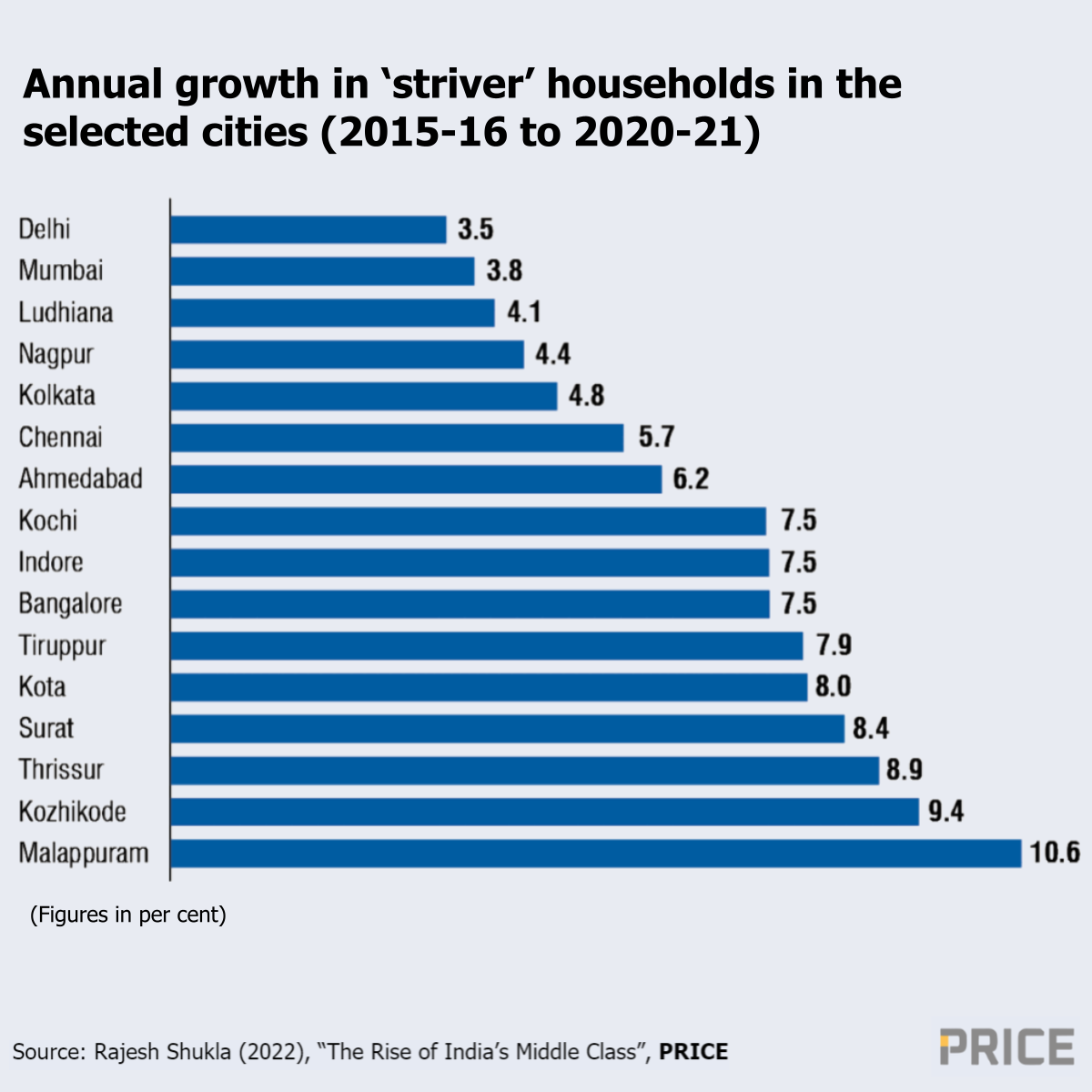 Surat, Pune and Ahmedabad record faster growth rates of Striver households